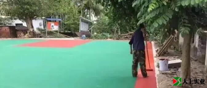 按比例将丙烯酸漆与含石英砂的粉末混合均匀,然后刮在基层表面。一般情况之下,施工分为两到三次(取决于设计厚度)。该层主要用于找平防水,减少丙烯酸面层的积水。找平层干固之后,进行丙烯酸下道漆施工。