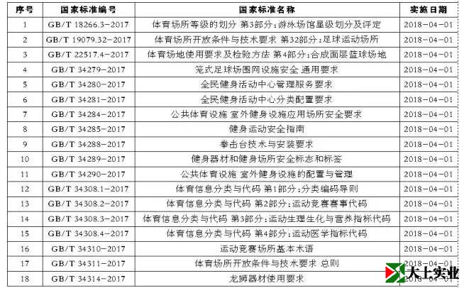 《体育场所开放条件与技术要求总则》和《体育场所开放条件与技术要求第32部分:足球运动场所》进一步在原有高危项目开放条件的技术上,对全民健身场所开放要求进行了全面覆盖,将大众健身场所管理工作引向科学、有序和规范的发展轨道。