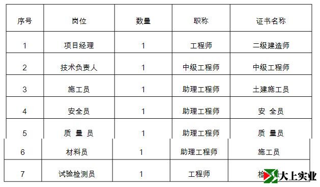 1、本项目的各施工人员由项目部统一调配,其中主要的机械操作手、中高级技术工人为我公司自有职工,劳务队伍选用常年与我公司合作,具备较强施工能力且成建制的施工队伍,保证工程顺利实施。