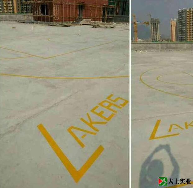 先定位放线,画出篮球场,然后粘胶带,准备刷漆