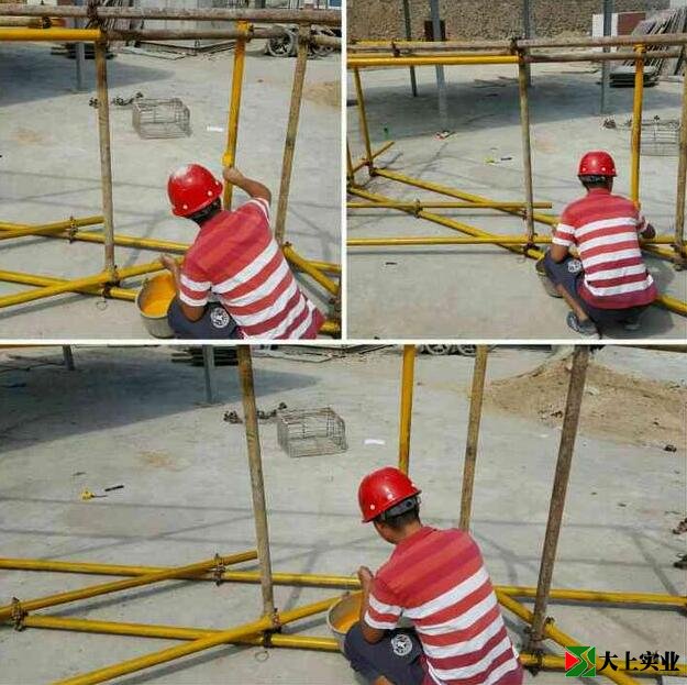 准备架子了,材料就是脚手架架管和扣件。没上漆的时候有点丑