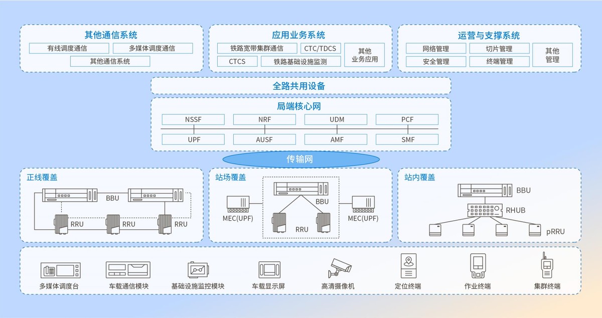 面向铁路定制化要求,中信科移动提升核心网系统容量、稳定性和可靠性指标,支持与铁路列控列调、运营与支撑系统以及铁路其他业务系统对接。基站提升关键板卡冗余、主备容灾配置能力,能够提供沿线大功率基站和站内数字化室分等多种类产品,同时满足前端各种采集、作业终端的接入要求。