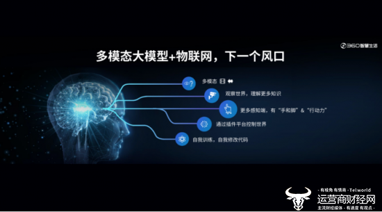 “大模型将带来一场新工业革命”,周鸿祎认为,所有软件、APP、网站,所有行业都值得用大模型进行重塑,而智能硬件是硬件化的APP。从大模型的发展趋势来看,多模态是大模型发展的必经之路,GPT-4最重要的变化是拥有了多模态的处理能力。因此,周鸿祎预言,多模态大模型与物联网的结合将会成为下一个风口。