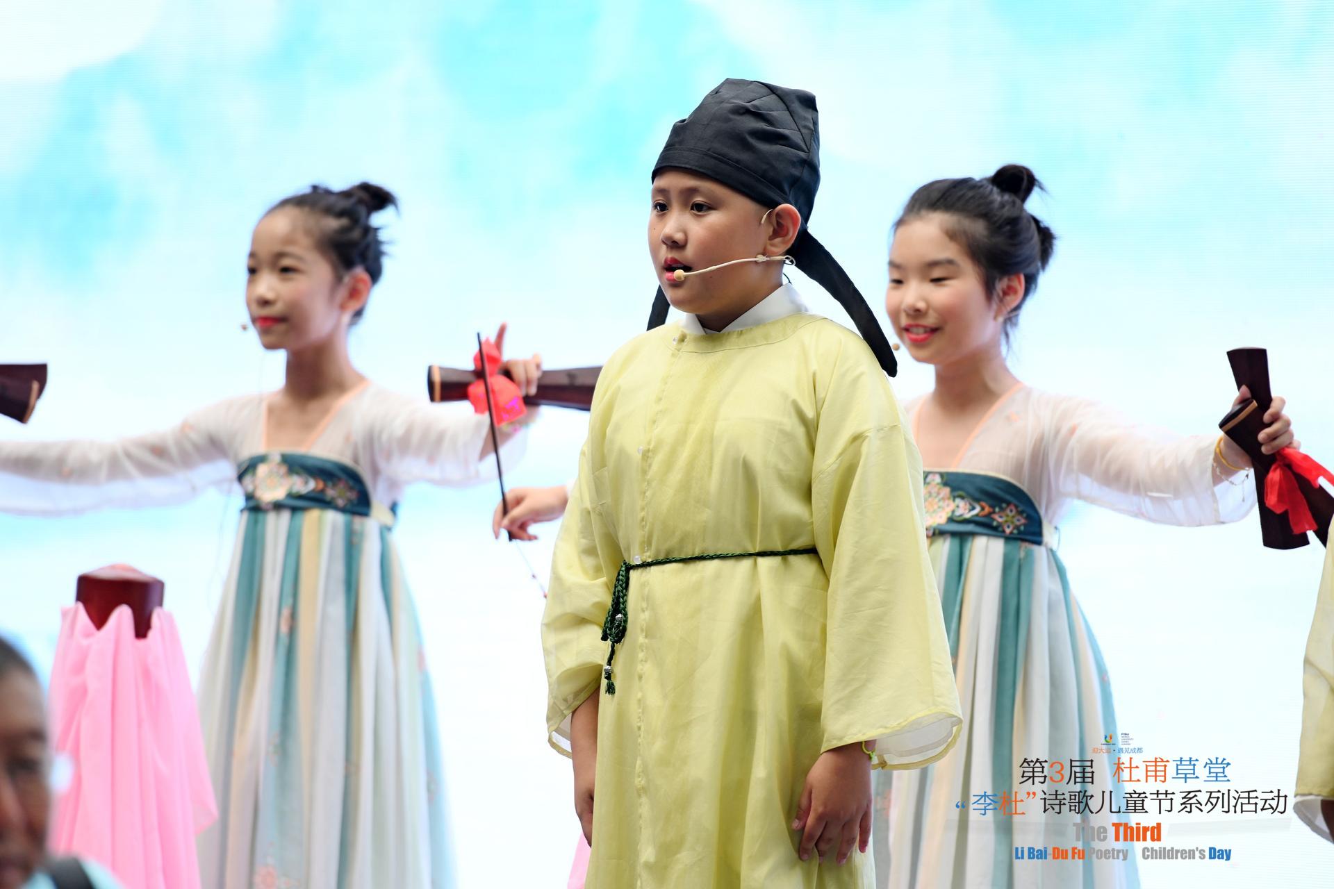 今(31)日,成都杜甫草堂大雅堂前,伴着欢歌笑语,第三届“李杜”诗歌儿童节系列活动拉开帷幕。