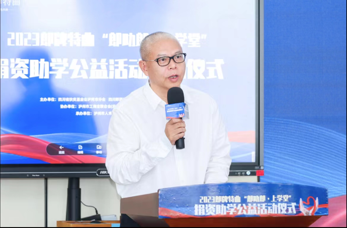 “郎助郎·上学堂”创新商业向善模式,通过义卖郎牌特曲,携手更多爱心企业和爱心人士捐资助学,向家境困难的学子伸出援助之手。活动现场,泸州市人大常委会原副主任、四川省扶贫基金会泸州市分会会长伍副钊表示,这一义卖公益活动目的明确: