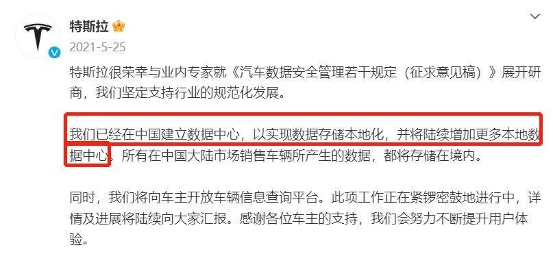 2022年3月,特斯拉表示在提交年度数据安全报告审查后,其数据安全标准已获得上海市有关部门的批准。马斯克也反复强调,特斯拉在中国产生的所有数据存储在本地,并继续扩大与监管机构的合作。