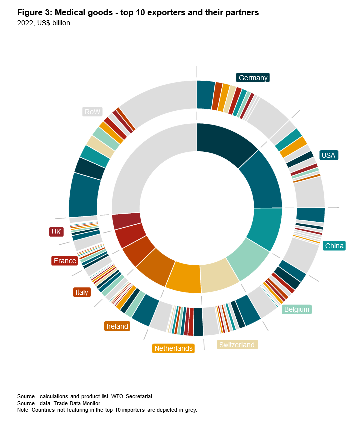 2019年至2022年期间,中国从第五位升至第三位,主要是因为个人防护设备的出口大幅增加。