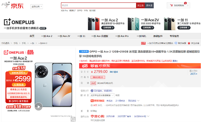 一加 Ace 2V京东618手机竞速排行榜现货单品销量累计榜第三,搭载天玑9000旗舰处理器,支持16GB超大内存,搭载旗舰同款内存基因重组技术,还获得南德48个月A级流畅性认证,长久使用无压力。一加 Ace 2V配置5000mAh超大电池,电池寿命是目前行业标准的两倍,更耐用。为满足消费者电竞需求,一加 Ace 2V搭载HyperBoost 2.0稳帧引擎、灵犀触控、电竞云计算专网、主动增强式超级Wi-Fi,从画面流畅度、触控操作及网络等多方面提升电竞体验。一加 Ace 2V 12GB+256GB版京东618至高优惠200元,京东价2599元,可享6期免息、30天价保、以旧换新至高补贴800元。