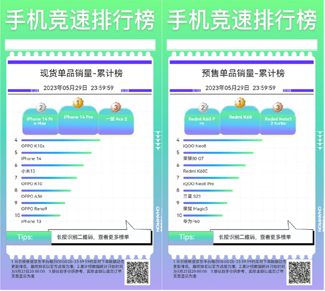 京东618预售于5月23日晚8点开启,手机预售竞速排行榜同步上线。该榜单基于真实销售数据,对参与京东618的品牌及产品进行排名,为消费者提供专业购机参考,让用户享受“省心价 放心换”的购机体验。在榜产品性能、优惠力度双双在线,不知道选择什么手机的消费者可以跟着手机竞速排行榜来选择,还有爆款30价保服务,省钱又省心。下面就一起看看有哪些在榜手机可以跟着买吧!