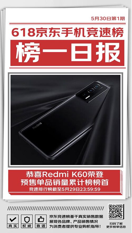 Redmi K60成为京东618手机竞速排行榜预售单品销量累计榜第一,其搭载第一代骁龙8+处理器,性能流畅,运用5000mm2超大VC散热,带来电竞级散热能力,同时内置5500mAh电池,支持67W快充、30W无线充电,续航无忧。Redmi K60还搭载2K柔性直屏,支持超动态显示、1920Hz PWM高频调光,观看舒适且护眼。拍照方面,Redmi K60搭载小米影像大脑2.0,配备OIS光学防抖相机,带来胶片相机玩法,解锁更多拍照乐趣。Redmi K60 12GB+256GB版京东618领券至高优惠800元,付100元定金,预售到手价2199元,可享6期免息。