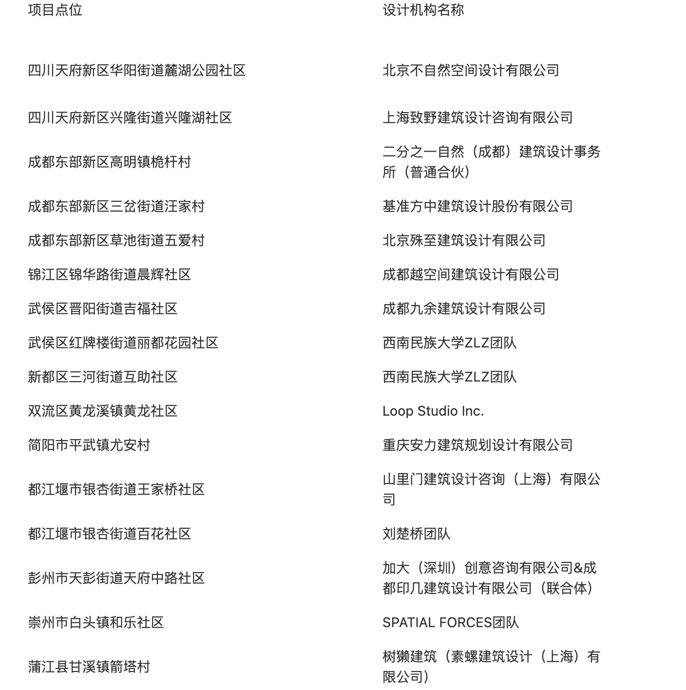 中国·成都第二届社区美空间全球创意设计竞赛一等奖名单