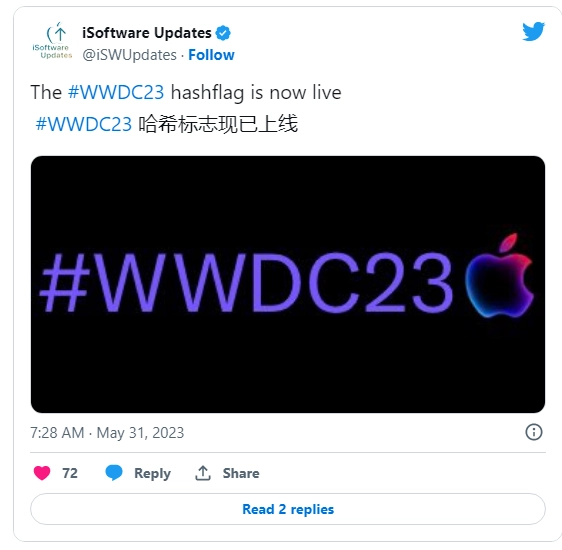 回复:苹果迎接开发者大会,在推特上启用#WWDC23 Hashflag