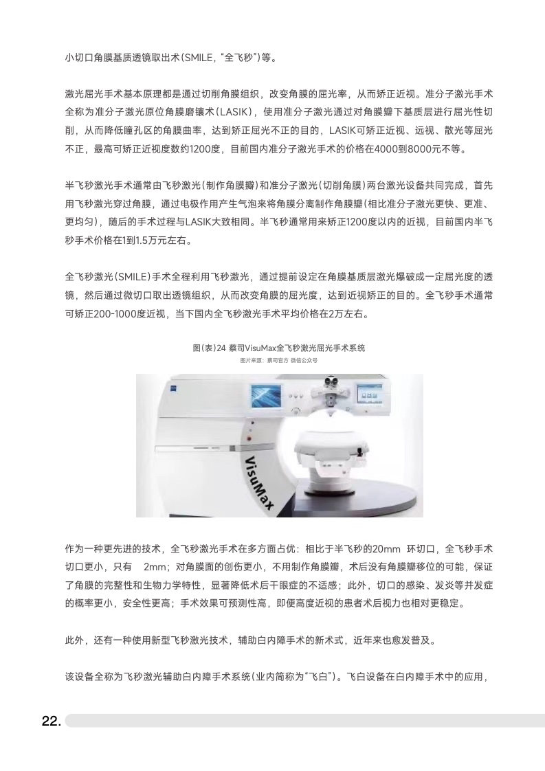 值得注意的是,在我国人口老龄化和过度使用电子屏幕的趋势下,眼科患病人群还将持续增加。同时,随着健康意识提升和更多创新器械、药物的出现,眼科治疗的渗透率有望进一步增长。