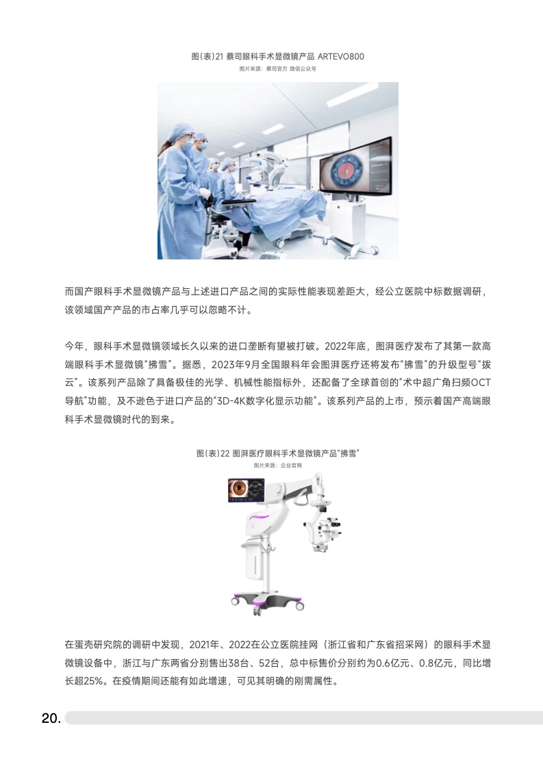 在蛋壳研究院的调研中发现,2021年、2022在公立医院挂网(浙江省和广东省招采网)的眼科手术显微镜设备中,浙江与广东两省分别售出38台、52台,总中标售价分别约为0.6亿元、0.8亿元,同比增长超25%。在疫情期间还能有如此增速,可见其明确的刚需属性。