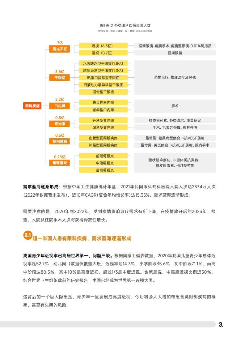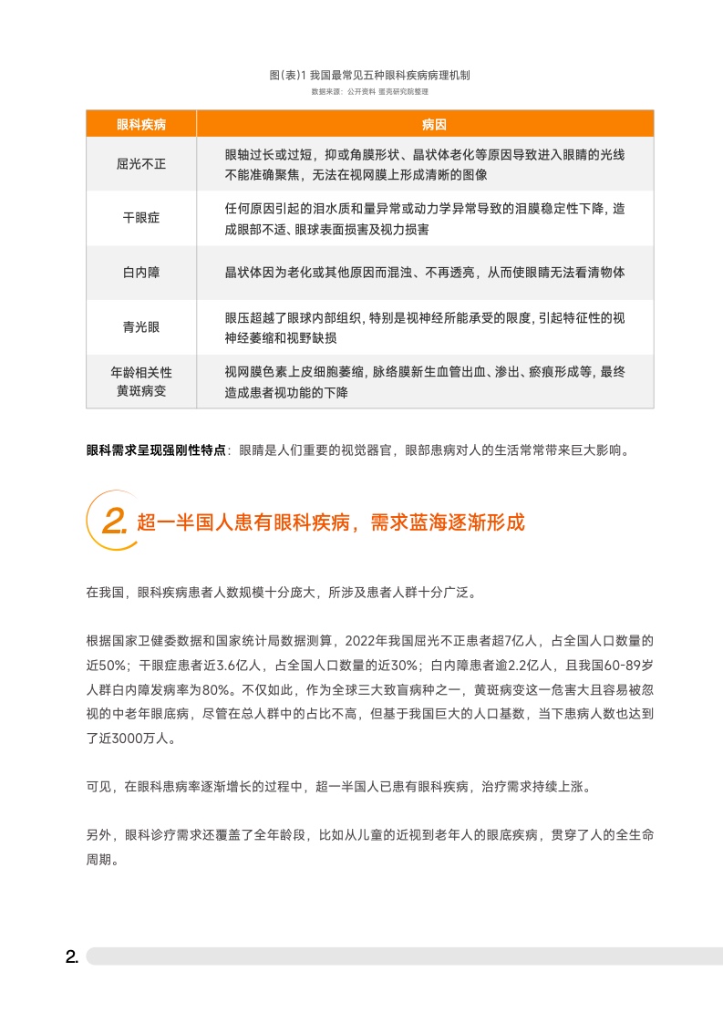 另外,眼科诊疗需求还覆盖了全年龄段,比如从儿童的近视到老年人的眼底疾病,贯穿了人的全生命周期。