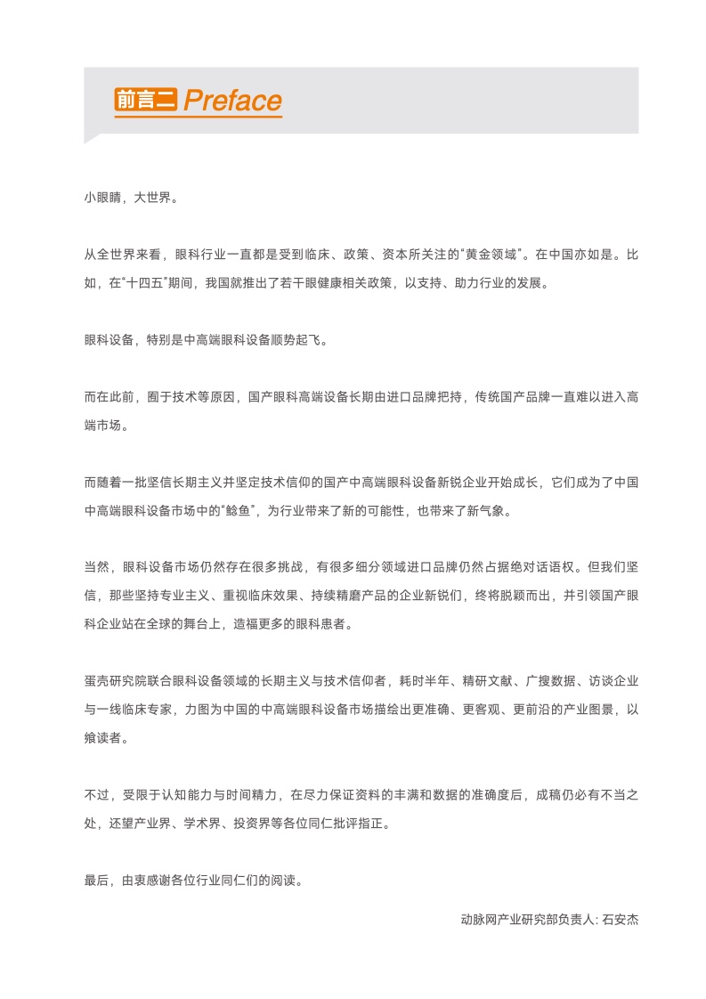 中高端眼科设备行业目前市场情况如何?企业有什么进展?有哪些新的趋势正在演进?为了解答上述问题,蛋壳研究院耗时半年、精研文献、广搜数据、访谈企业与一线临床专家,撰写了《2023中高端眼科设备行业白皮书》,力图为中国的中高端眼科设备市场描绘出更准确、更客观、更前沿的产业图景,以飨读者。