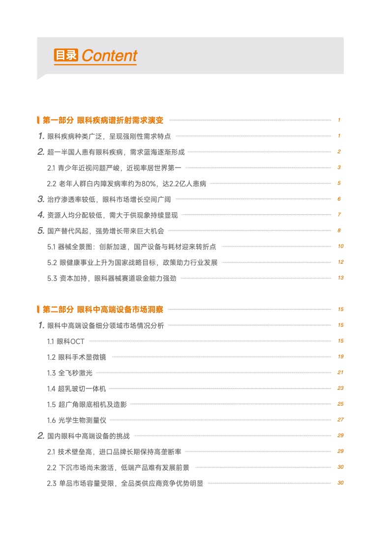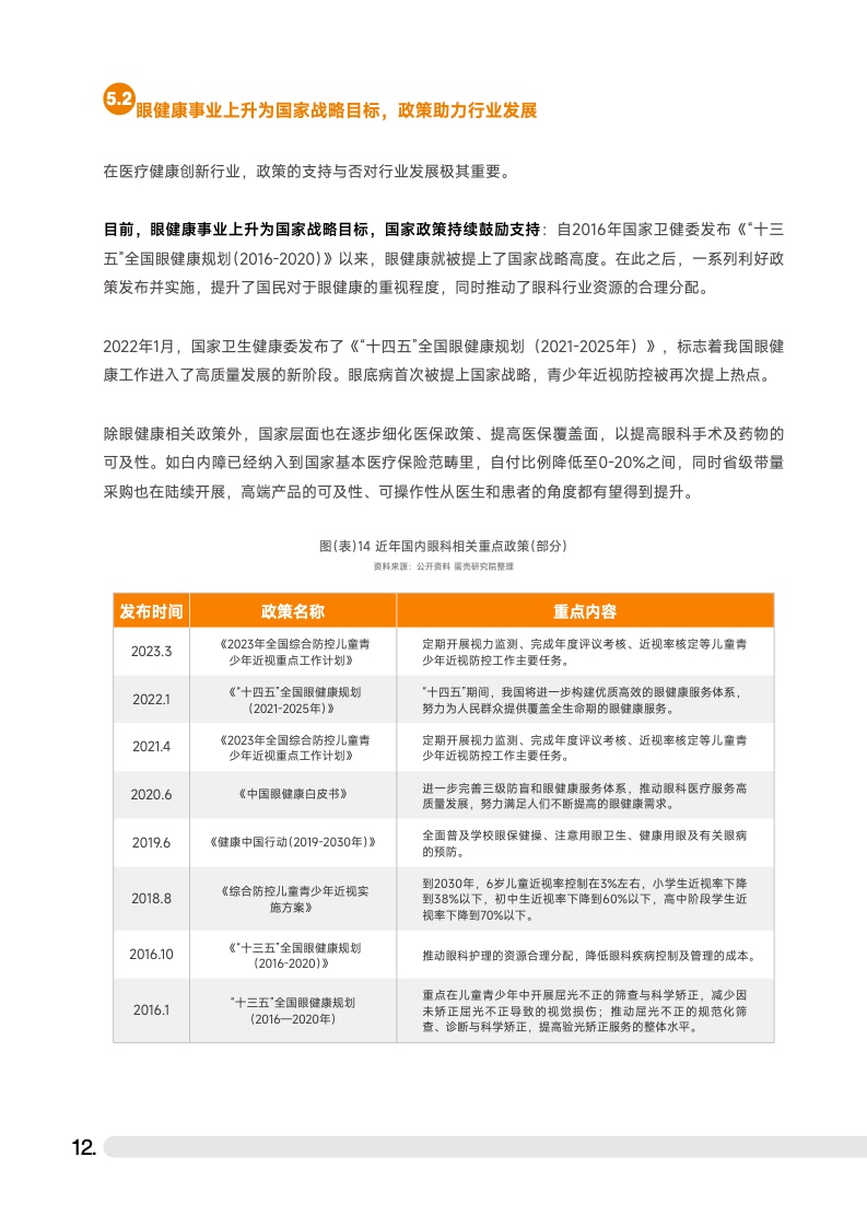 这背后,一方面是在需求端,由于眼科专科高度细分、专业性较强,消费者对眼科疾病的认知与重视程度有限;另一方面是在供给端,国内眼科药品及器械的发展长期处于较为早期的阶段,且主要以进口为主导,价格较为昂贵,普及率和普惠性还不够。