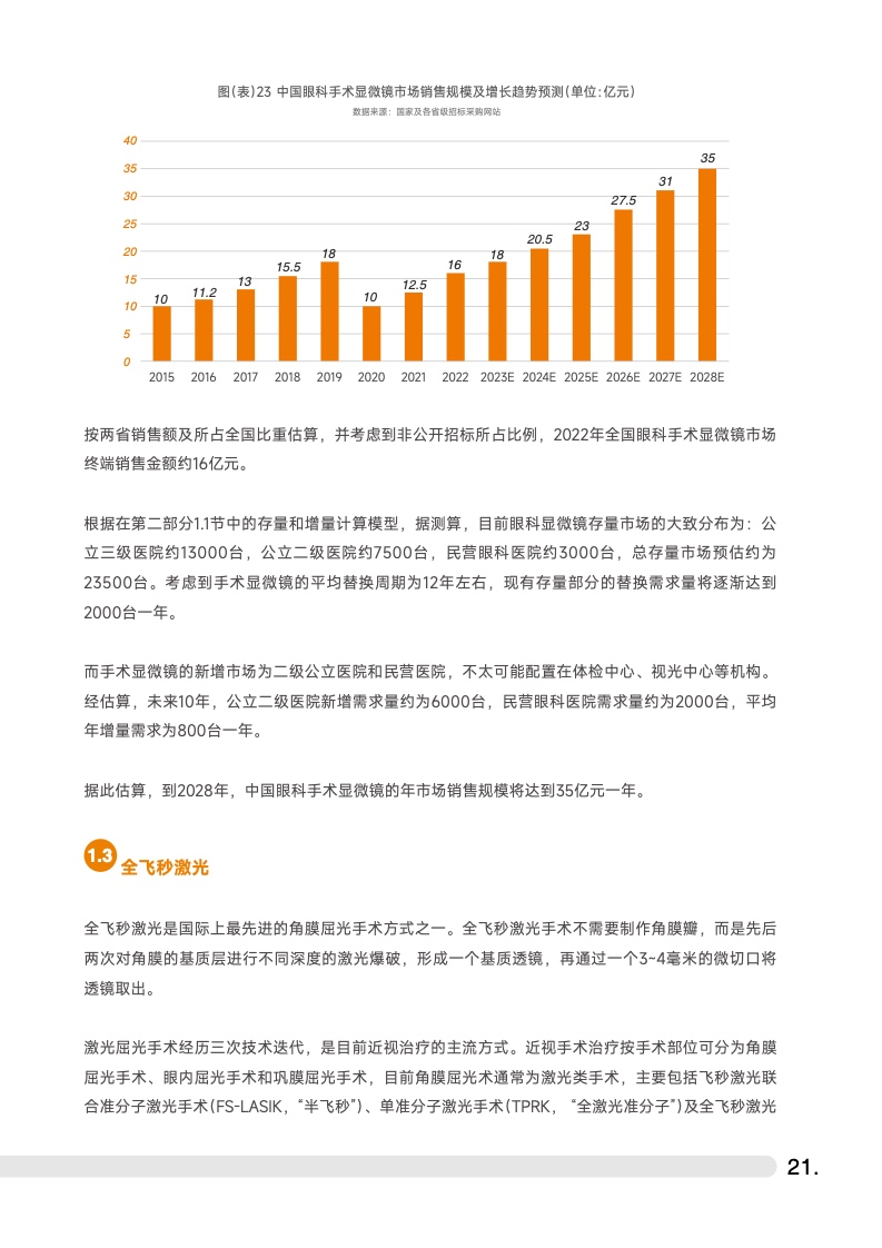 据估算(估算模型详见报告),到2028年,中国眼科手术显微镜的年市场销售规模将达到35亿元一年。