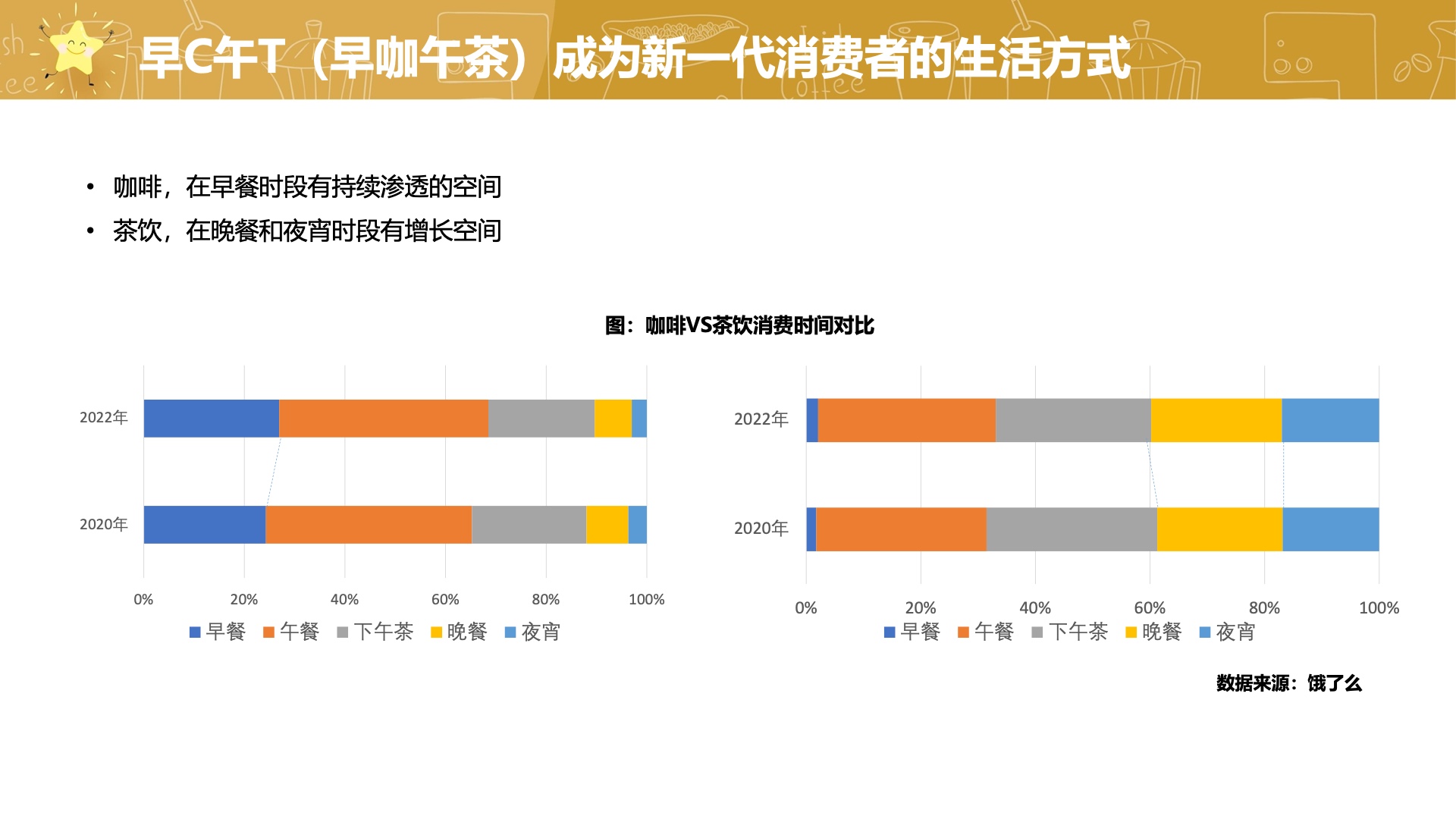 同时,报告也揭示了消费人群和消费时间上的差异。咖啡的主力消费人群为25-30岁和31-35岁,而茶饮则更加注重成熟和健康。从消费时间上来看,咖啡消费主要在早、午餐时间,茶饮则主要在午后,由此“早咖午茶”成为新一代消费者的生活方式。