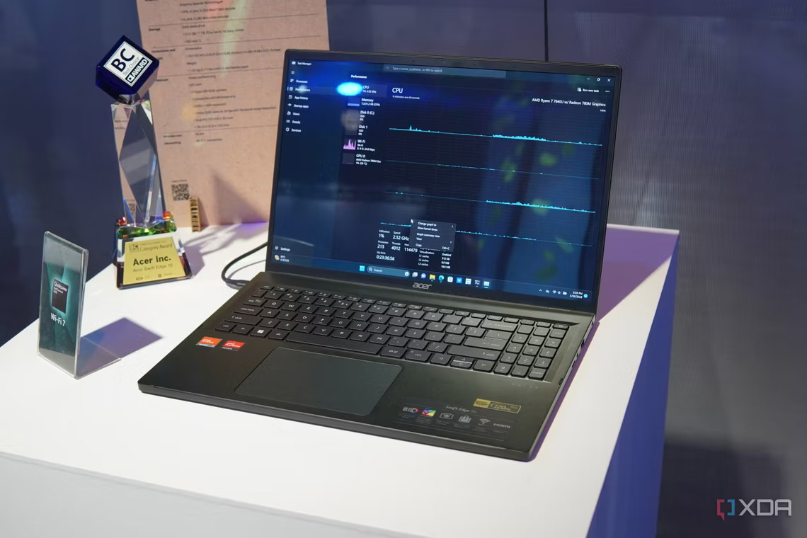 IT之家 5 月 30 日消息,宏碁不久前发布了 Swift Edge 16 笔记本,搭载锐龙 7040 系处理器,售价 1300 美元(IT之家备注:当前约 9178 元人民币)。在今日的台北电脑展上,宏碁展示了这款笔记本,确认搭载 R7 7840U 处理器。