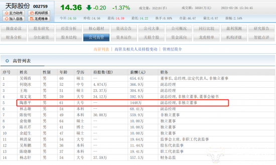 天际股份高管中,副总经理陶惠平的薪酬高达1448万元,远比公司其他高管高,是为什么呢?陶惠平又有什么经历?运营商财经试图揭秘。