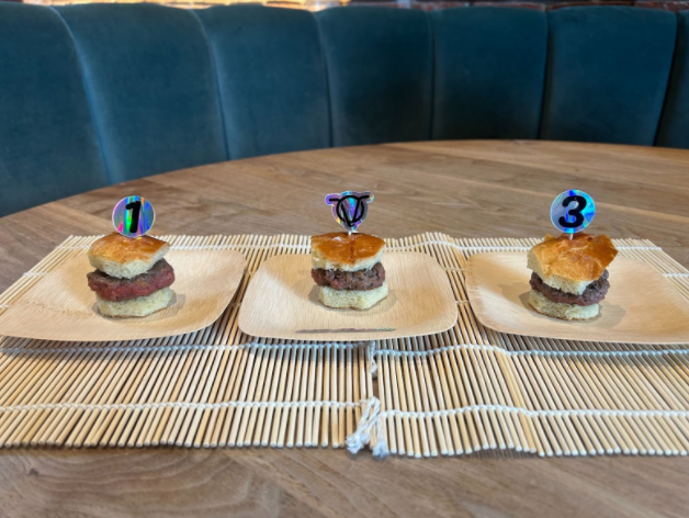 接下来是牛肉汉堡。顺便说一句,每一个汉堡都没有添加任何酱汁或浇头。克里格说,这是为了进行公平的比较,它们的调味方式是相同的。我真的没什么好说的,这只是一个普通的汉堡。就在我咀嚼的时候,我的眼睛盯着当天品尝菜单上的最后一项:实验室培育的版本。