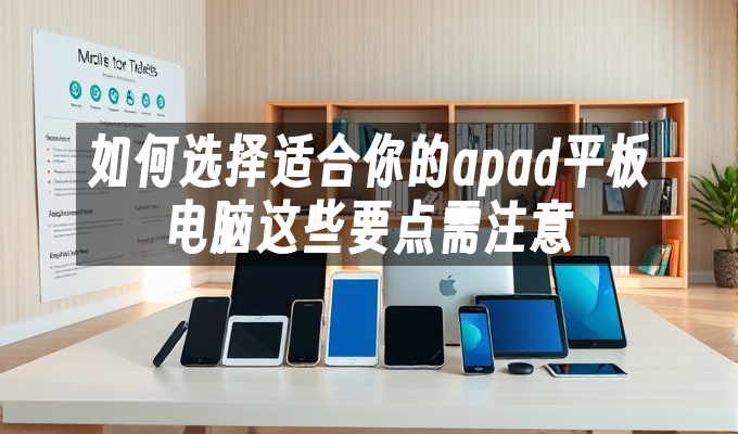 选择适合自己的APad平板电脑需要从多方面考虑,包括需求、硬件性能、系统兼容性、显示效果和便携性等因素。通过明确个人需求和预算,关注硬件配置和用户体验,最终选择出能满足自己日常使用的产品。希望本文提供的选择要点能帮助你在纷繁复杂的市场中作出明智选择。
