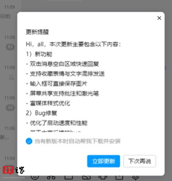 IT之家 5 月 30 日消息,据IT之家网友反馈,腾讯 QQ Windows 全新 NT 架构版迎来了 v9.8.3.1318 内测版更新,本次更新带来了双击消息空白区域快速回复,支持收藏表情与文字混排发送,输入框可直接保存图片,屏幕共享支持批注和激光笔,富媒体样式优化等等。