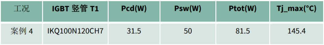 可见,可以通过单颗大电流单管进行更高功率逆变器的设计,但是需要合理的散热来解决单颗TO247PLUS封装上高达80W的功耗。值得一提的是:对大电流的单管,降低其Rth(c-h)将获得更大的收益。因为大电流单管的Rth(c-h)占有更大比例。