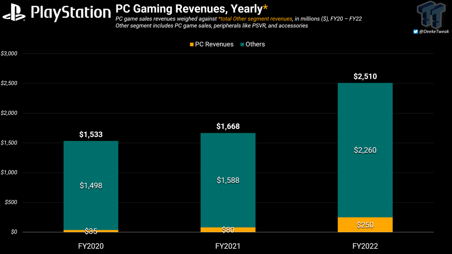IT之家 5 月 30 日消息,索尼互动娱乐公司(Sony Interactive Entertainment)近日公布了游戏业务简报,PC 游戏规模虽然呈现指数级上涨,但在体量上无法对比 PlayStation 业务,在整体营收中的贡献比例依然不大。