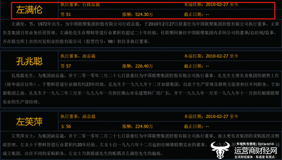 2010年联塑于港交所上市,姐姐姐夫的公司发展的还不错,左满伦应该是从工作之初便跟着他们二人一起干了。