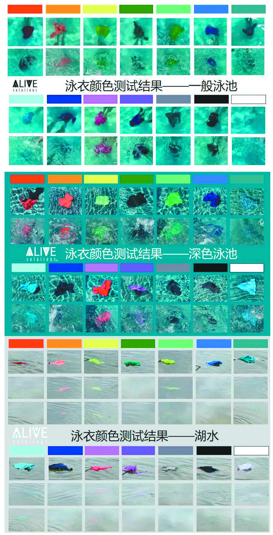 在室内泳池和湖泊水中,对比度强烈的荧光色系均是最佳的泳衣颜色。
