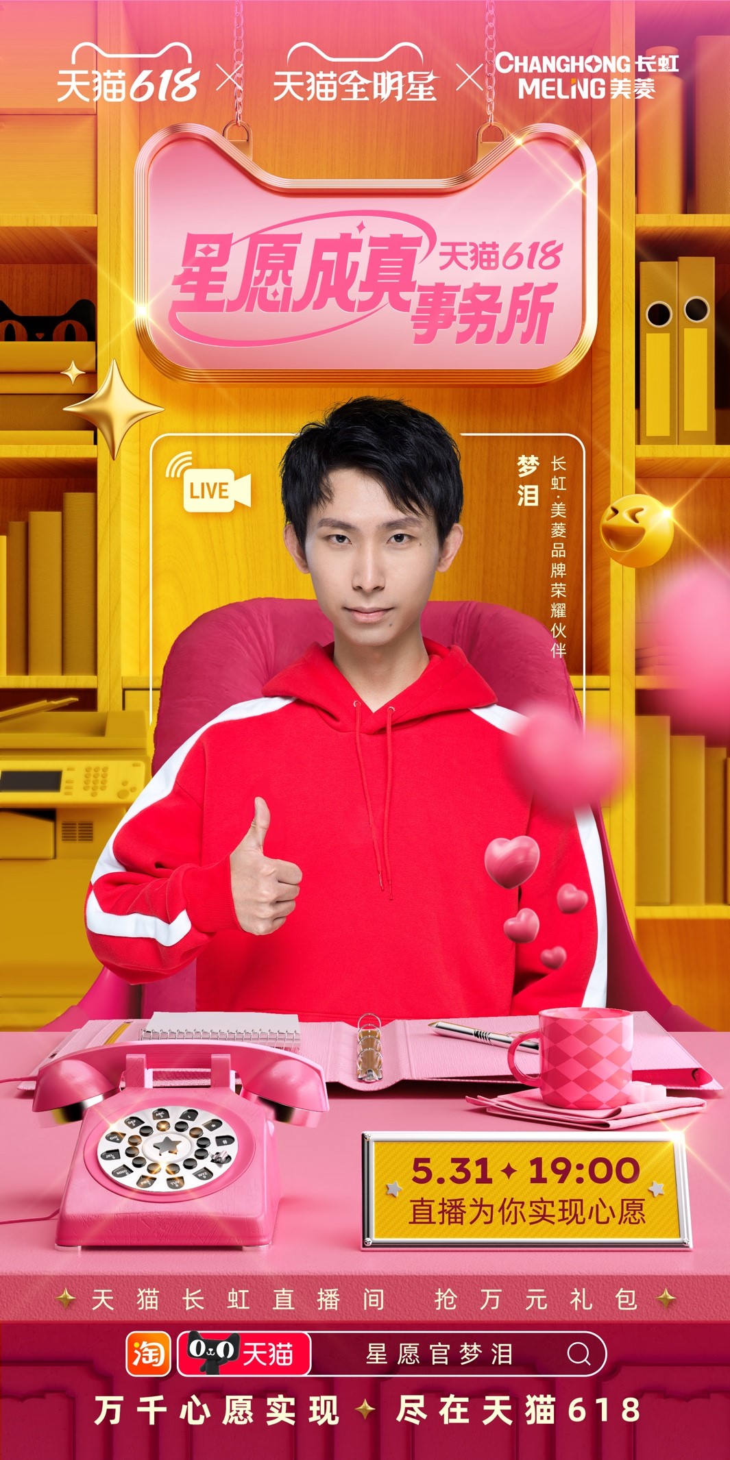 不仅如此,长虹·美菱品牌荣耀伙伴梦泪也将以天猫618星愿实现官身份加持为大家带来超多超级福利,除了不定时发放的红包雨,梦泪也贴心为粉丝准备了周边礼盒。据官方消息了解到,在直播过程中梦泪还将梦幻连麦“内娱客服”张大大为粉丝“还愿”,更有KPL夏季赛门票抢不停。