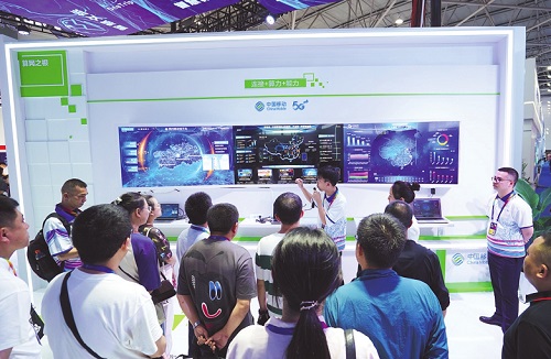 依托5G、人工智能、云计算、边缘计算等新一代信息技术,中国移动展示了在数字政府、智慧工厂、智慧医疗、智慧文博、智慧园区等领域打造的多个行业标杆,吸引了众多参观者。