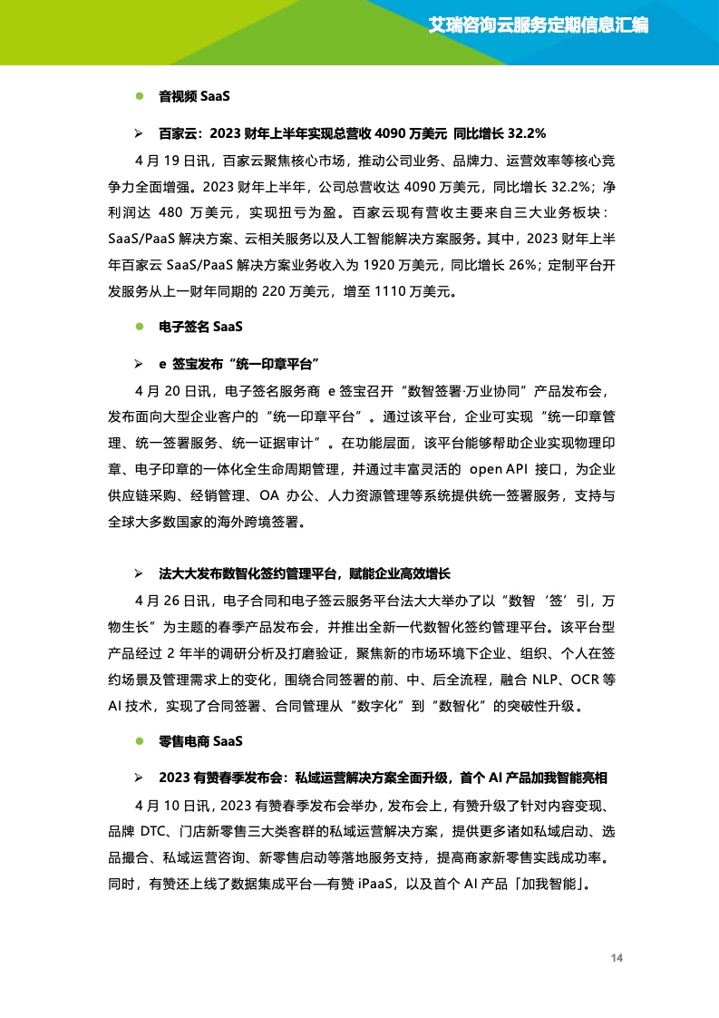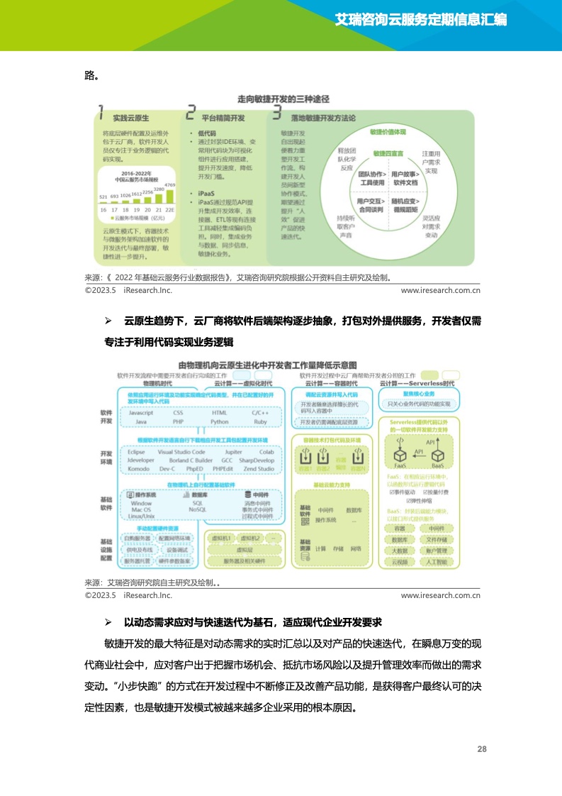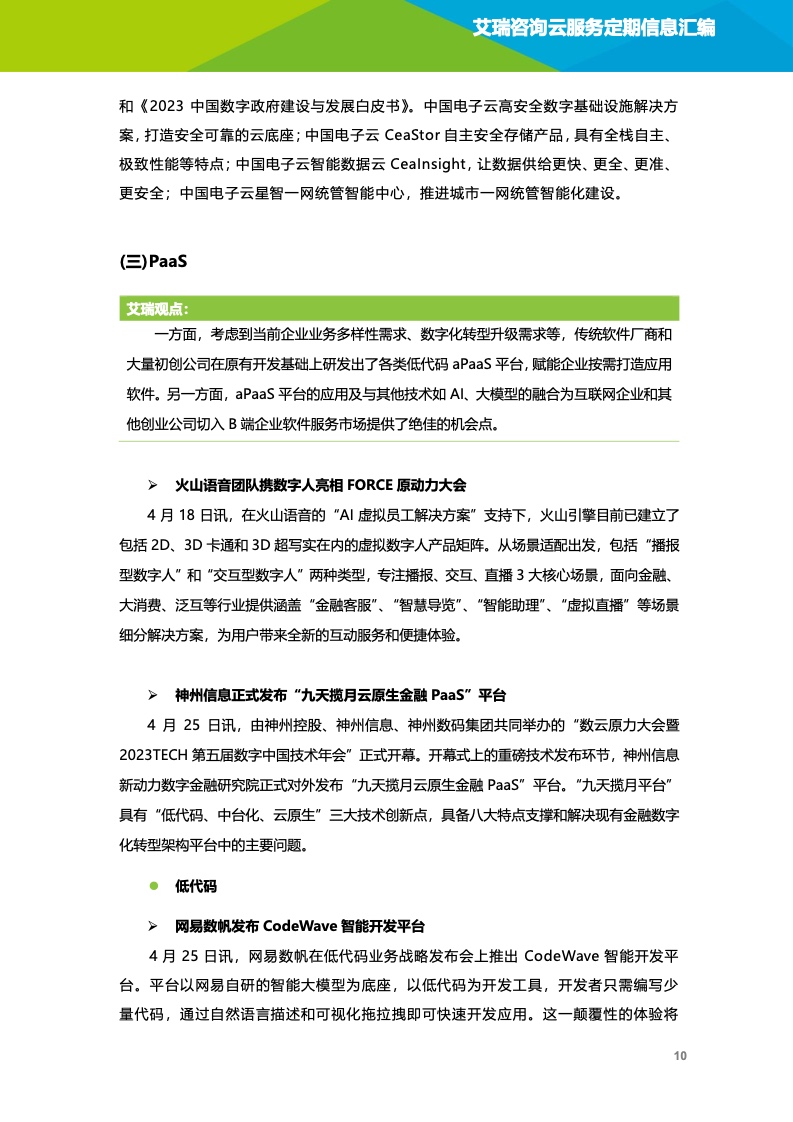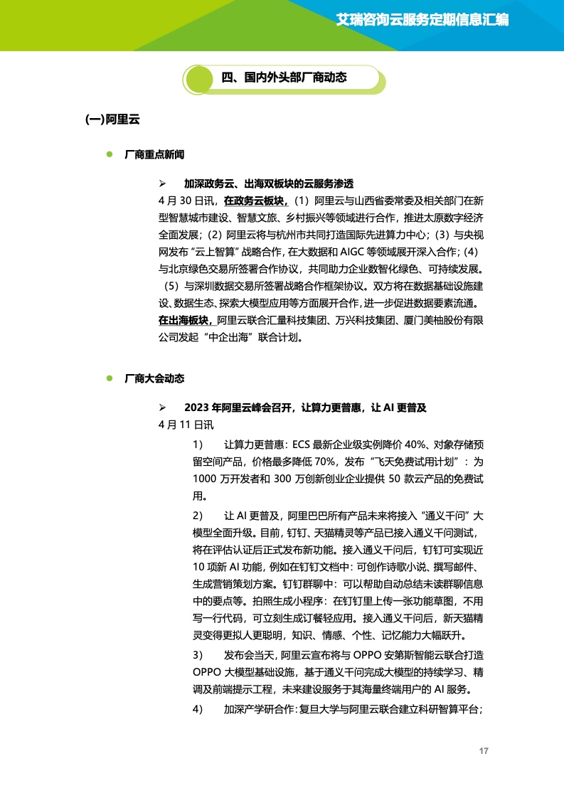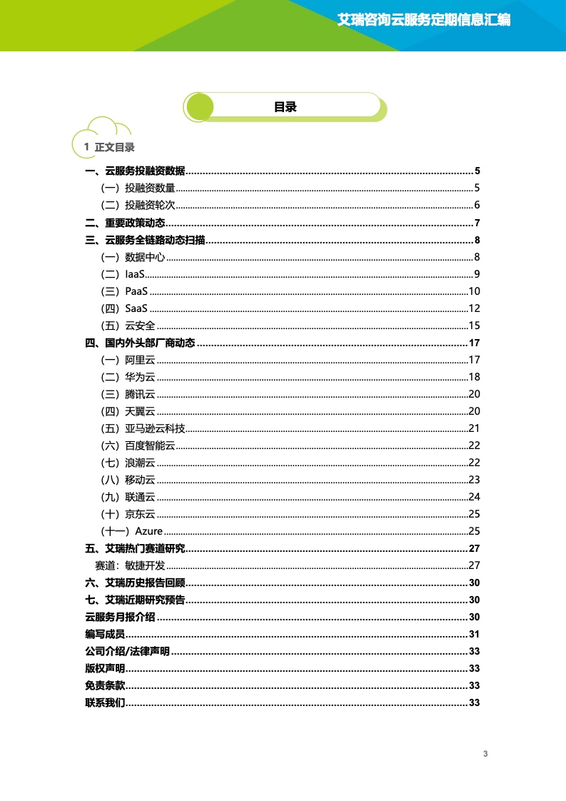 本月报是艾瑞针对整体云服务以及敏捷开发等热门赛道在本月产生的热门事件、政策动向、技术革新、招采信息、资本动态等,及重点客户和头部企业的动态信号及标杆案例,进行材料搜集并整理的行业信息监测报告。