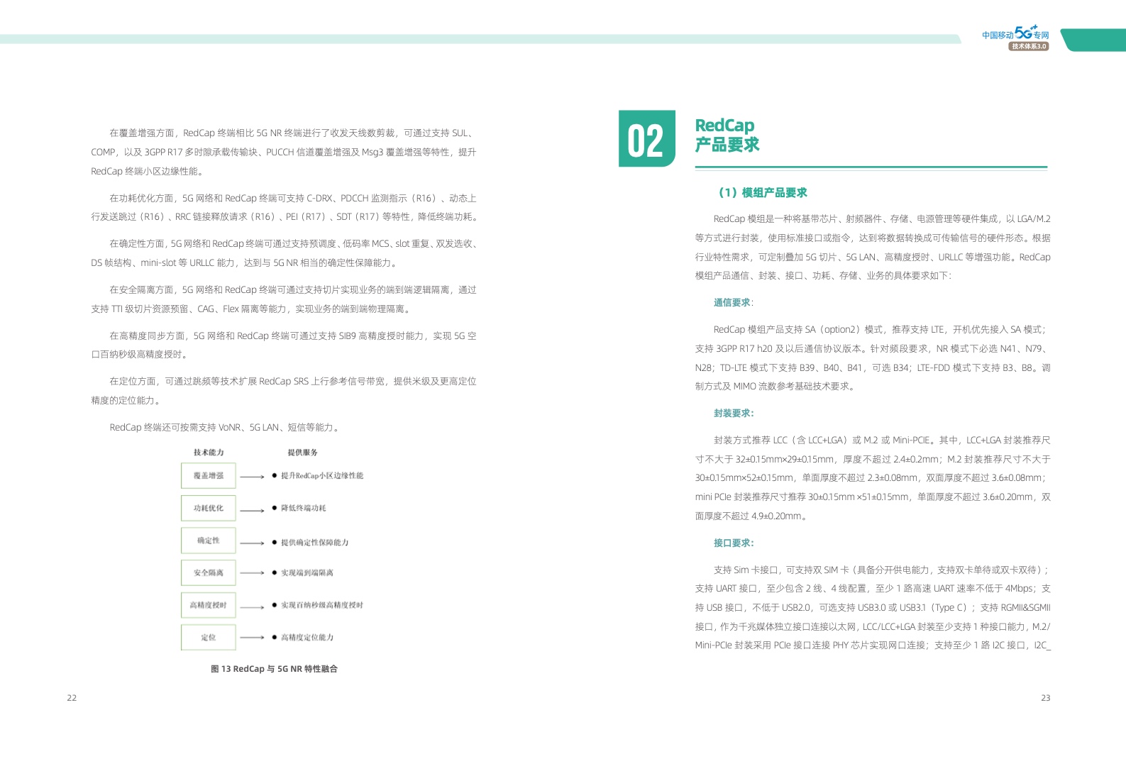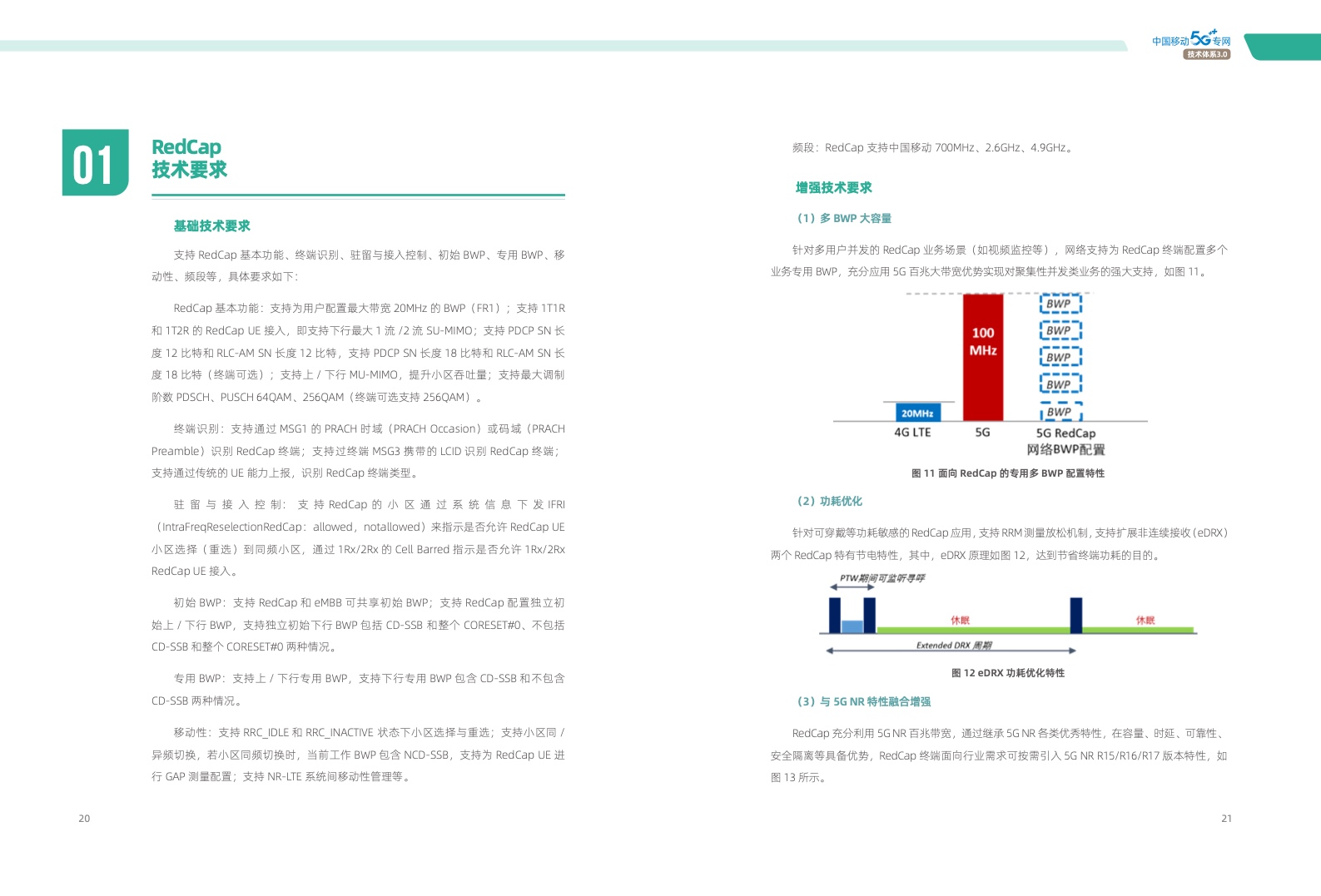 在技术及产品要求方面,白皮书明确了中国移动详细的RedCap技术基本功能和增强功能要求,针对模组、电力终端、工业终端、视频监控终端、可穿戴终端等RedCap产品,进一步明确了软件、硬件等要求。