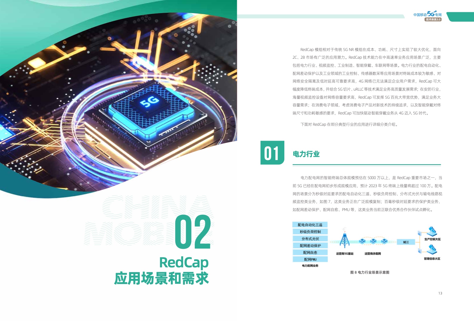 在应用场景和需求方面,白皮书将RedCap应用场景分两大类,一是有5G刚需但终端成本敏感,如电力、工业,二是4G可满足一定需求但有升级演进需求,如视频监控、可穿戴,并对各重点场景的详细需求进行了深入分析。