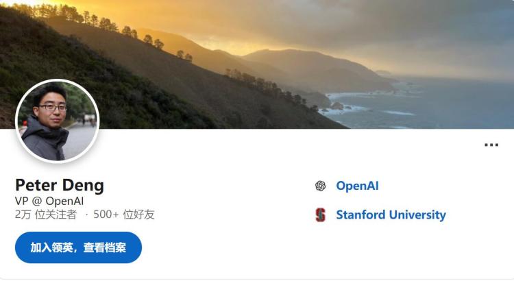 品玩6月1日讯,据领英页面显示,硅谷知名产品经理 Peter Deng 现已加盟 OpenAI,担任消费产品副总裁一职。