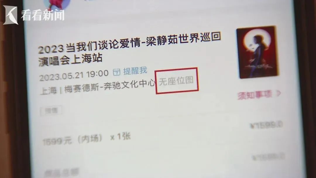 据上海电视台报道,上海市民张女士称,她购买了5月20日梁静茹演唱会的门票,票面价值是1299元,位于二层看台。然而,她到现场发现,座位正前方的柱子恰好挡住了歌手。