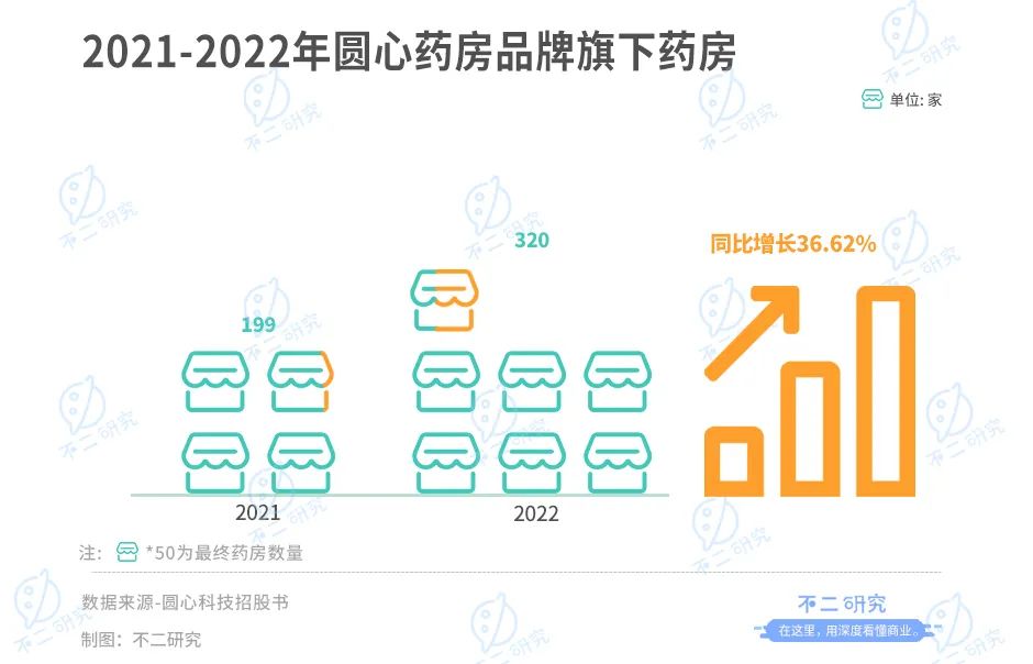 有个注脚是,首份招股书中圆心科技宣称其为医疗科技公司,但在新版招股书中其改变定义为医疗健康公司。即使作为一家医疗健康公司,圆心科技的科技成色似也略显不足,这或许会影响到资本市场“用脚投票”。内忧外患,新故事尚需时间疫情之下,医疗版块趁势出圈;互联网医疗也在早期风口之后,悄然步入下半场。作为一个同质化竞争严重的赛道,互联网医疗行业的许多公司,并未逃脱市场积累初期“烧钱圈地”的怪圈,何时实现造血盈利、摆脱单一盈利模式等,已成为行业共同难题;毛利水平处于第二梯队的圆心科技同样无法避免。据招股书显示,截至2022年12月31日,圆心药房品牌旗下拥有320家药房,较上年度的199家增长36.62%。