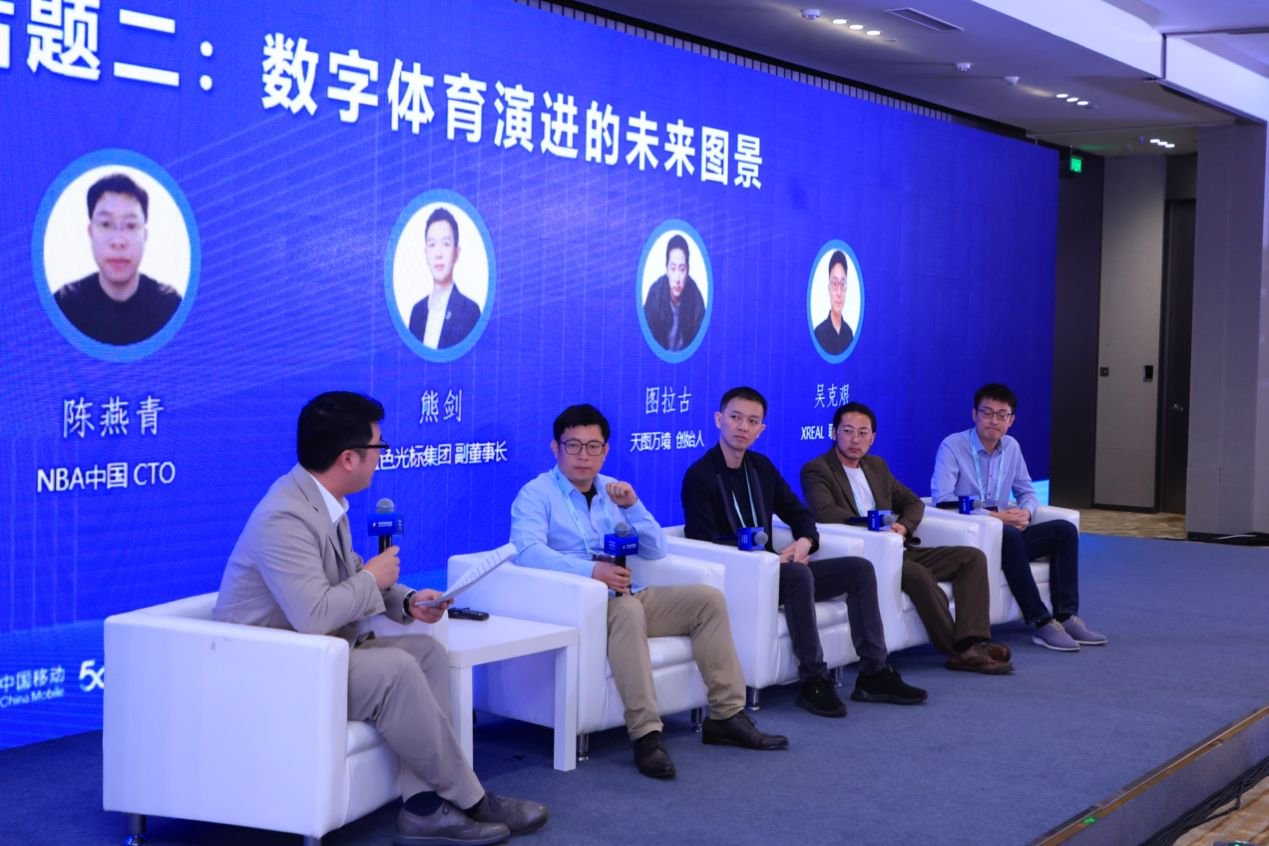全元宇宙公司创始人 郑秋实在第二个圆桌对话中,NBA中国CTO陈燕青、蓝色光标副董事长熊剑、天图万境创始人图拉古、XREAL联合创始人吴克艰等嘉宾共同探讨了数字体育未来的发展图景。