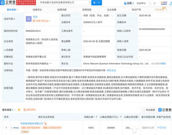 企查查APP显示,近日,中电信量子信息科技集团有限公司成立,注册资本30亿元人民币,接下来,运营商财经网试图揭秘。