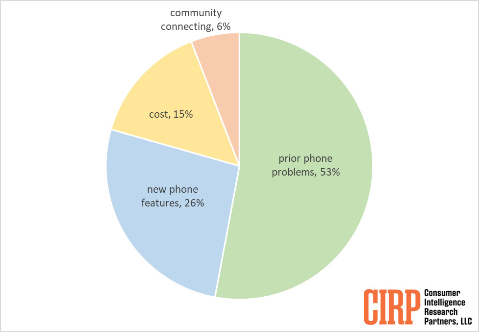 该机构于今天发布了后续报道,指出推动安卓应用转投 iPhone 怀抱的主要原因是现有机型上的各种问题,占比为 53%。