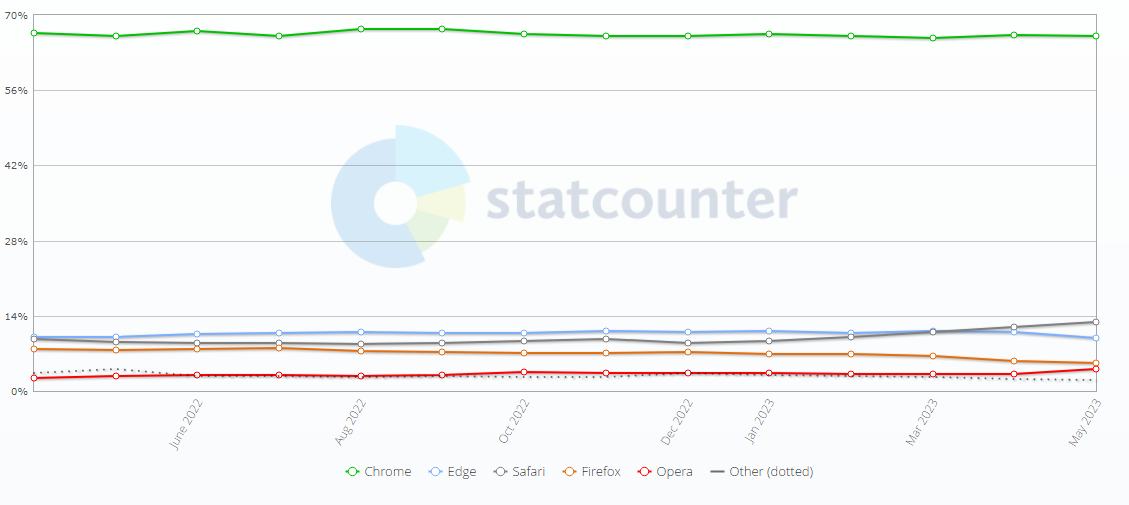 IT之家 6 月 1 日消息,研究机构 statcounter 发布了 2023 年 5 月报告,揭示了有关浏览器的最新统计数据。