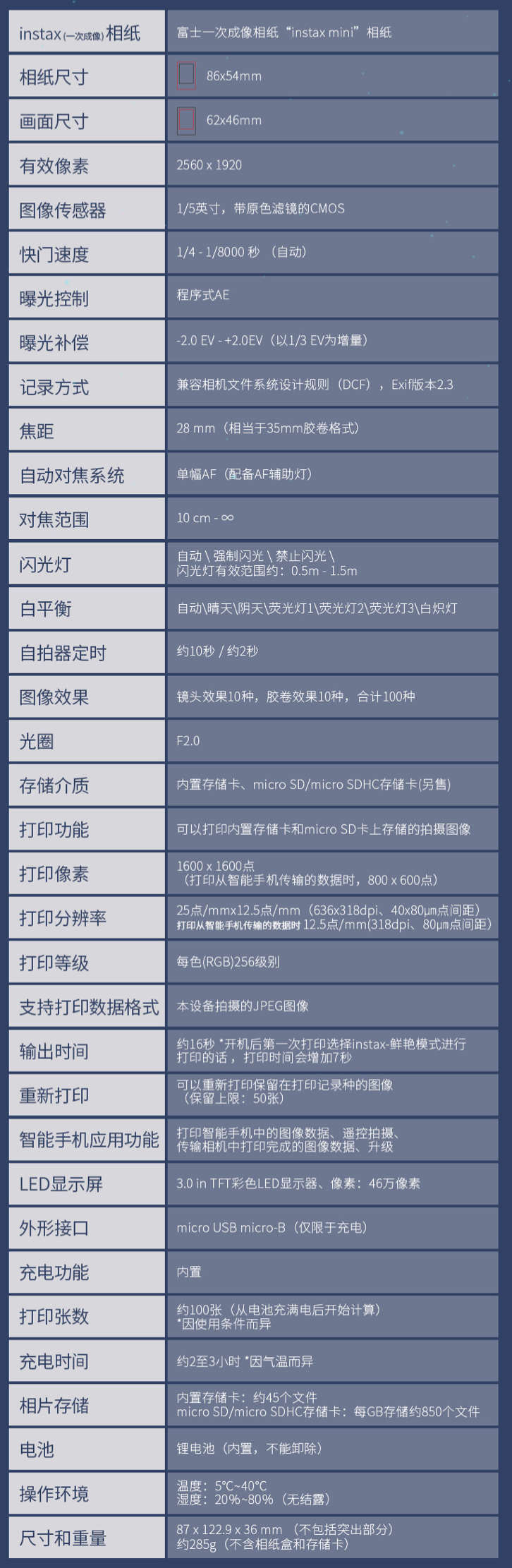 富士 instax mini Evo 参数一览: