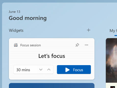 除了这两个核心变化,这个 Dev 预览版还增加了一个新的专注会话(Focus Session)小部件,作为 Microsoft Store 中针对 Canary 和 Dev 频道中的 Windows 预览体验成员的时钟更新的一部分,可以让用户更容易地开始和停止专注会话。