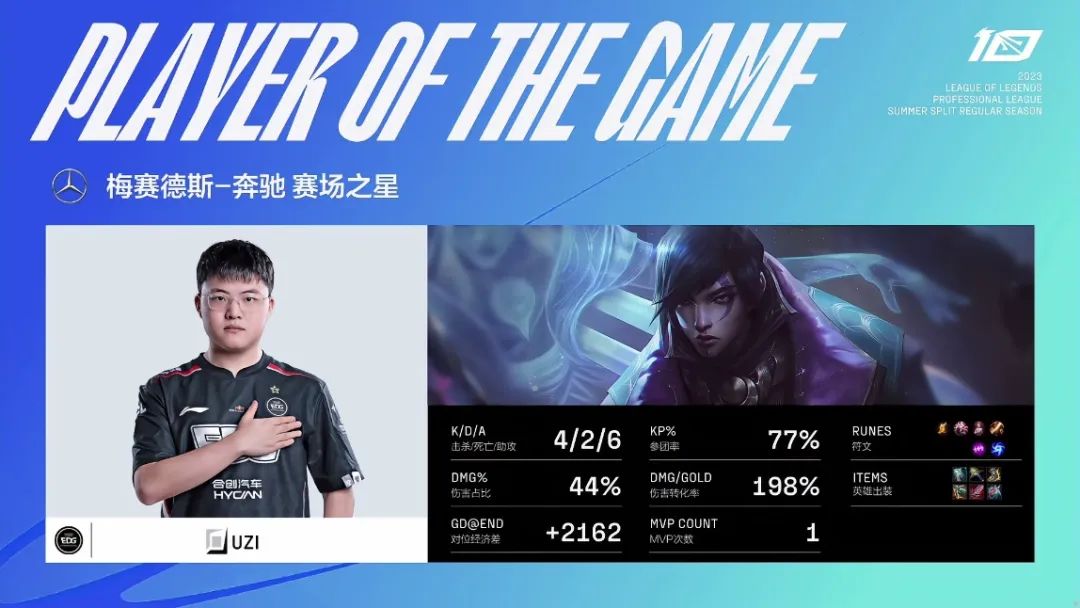 Uzi时隔457天重回赛场,斩获MVP拿下首胜