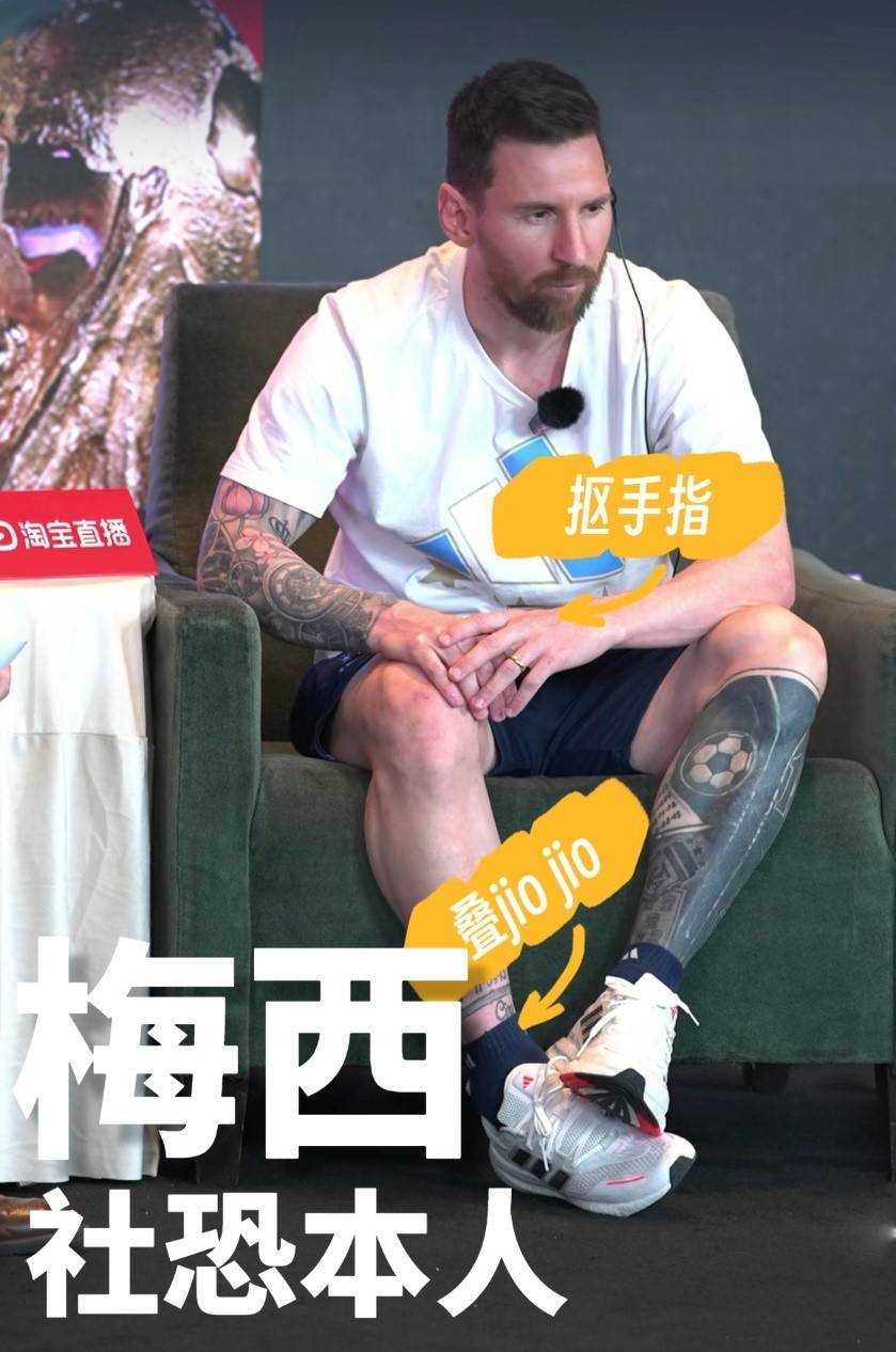 在梅西出现之前,已有数百万粉丝蹲守直播间。作为一名“资深社恐”,梅西坐下后,对着直播间镜头显得有一丝害羞。