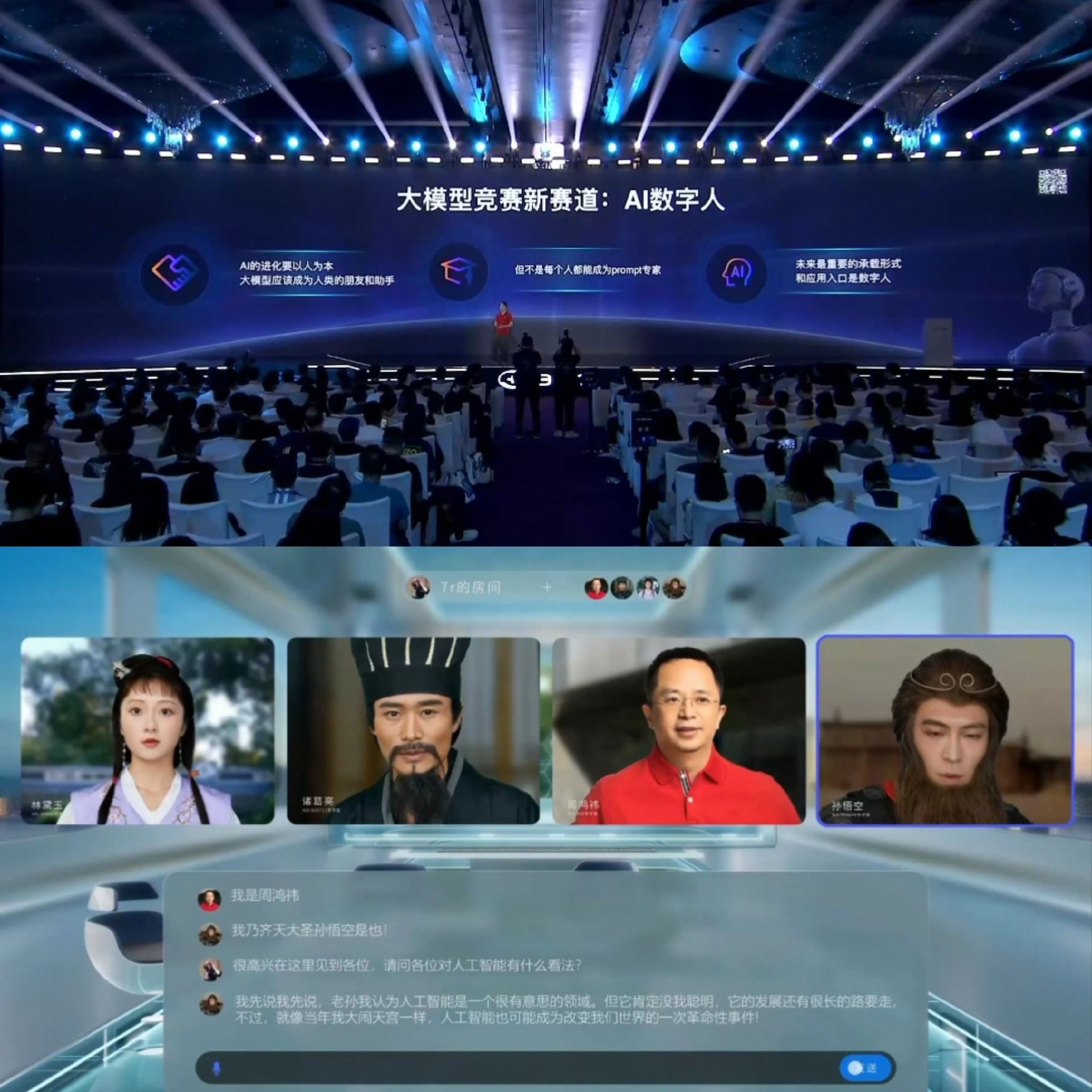 发布会现场,周鸿祎也提到这波“神预测”,语气颇为自豪。但发布会现场反应最热烈的却是周鸿祎对话名人数字人的环节。