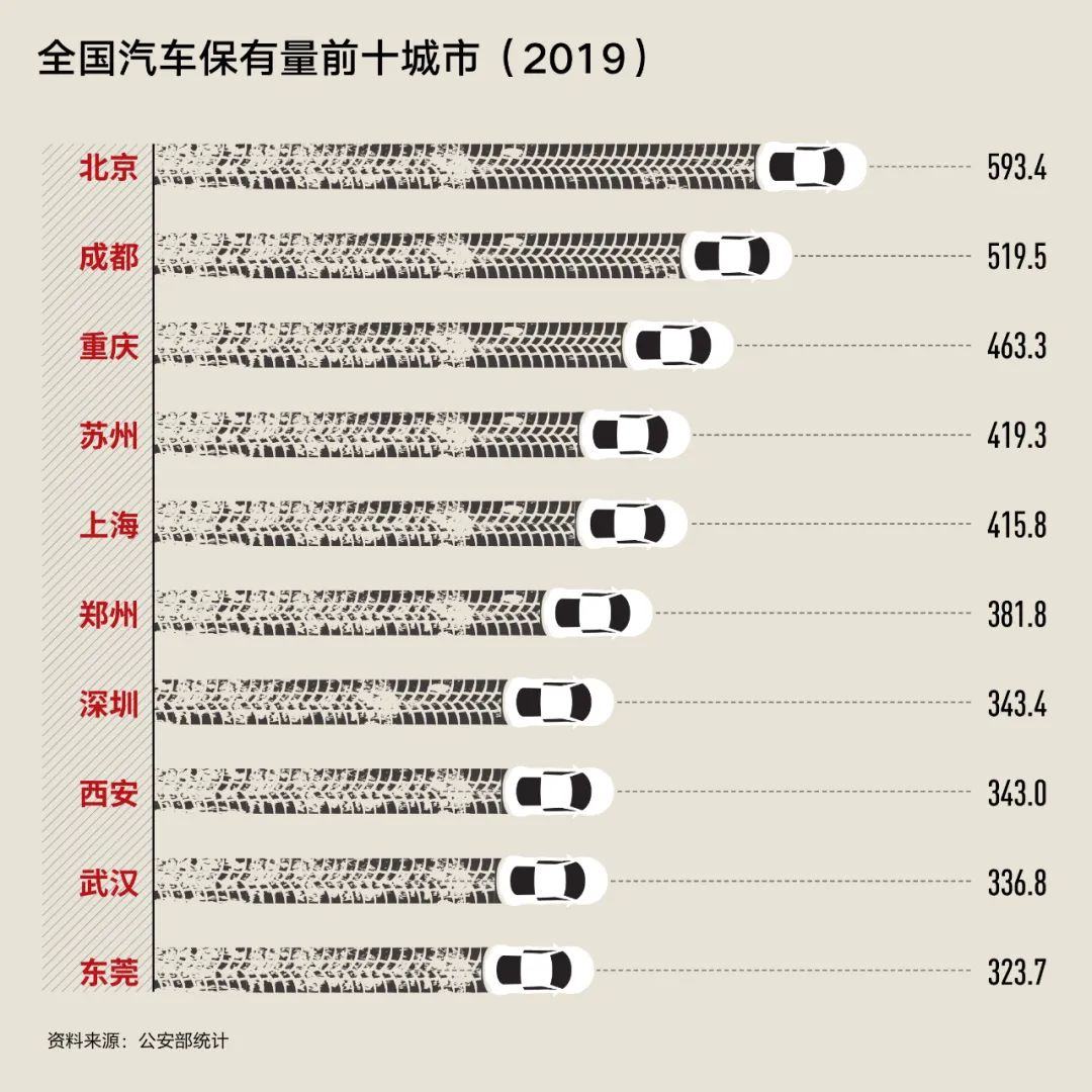 鲜为人知的是:成都的汽车保有量在各大城市中高居全国第二。直到2010年,成都还仅以120万辆排名第八,但2017年就飙升至432万辆,为此还在这一年启用了川G号牌,因为机动车增长速度太快,原有的号牌资源已经不够用了。照此速度,成都成为国内汽车消费第一城,也只是个时间问题。